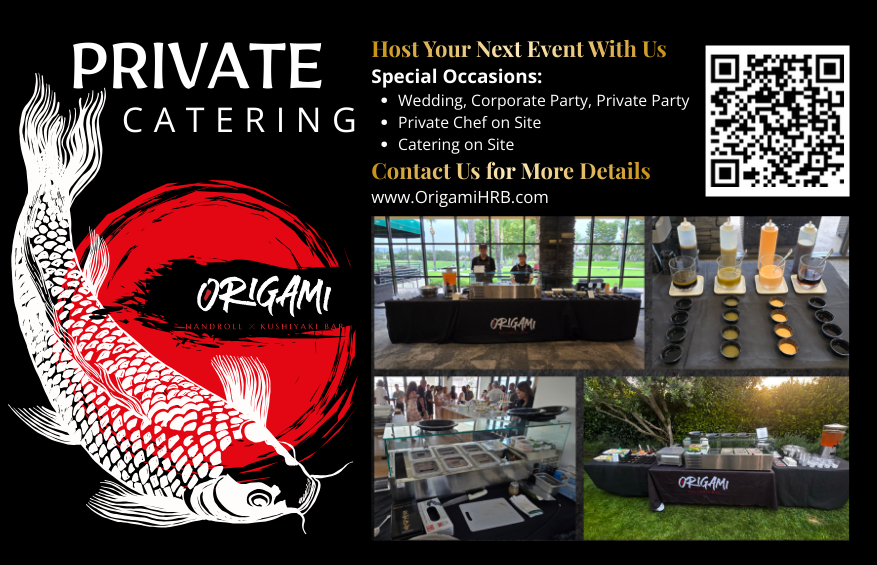Our mission at Origami Handroll x Kushiyaki Bar is to provide a culinary journey that transcends the ordinary. We are dedicated to delivering the highest quality and freshest ingredients, expertly crafted into a symphony of flavors that reflect the true essence of Japanese sushi culture. With a commitment to impeccable service and an inviting atmosphere, we aim to exceed the expectations of our guests and foster a lasting appreciation for the beauty of sushi.